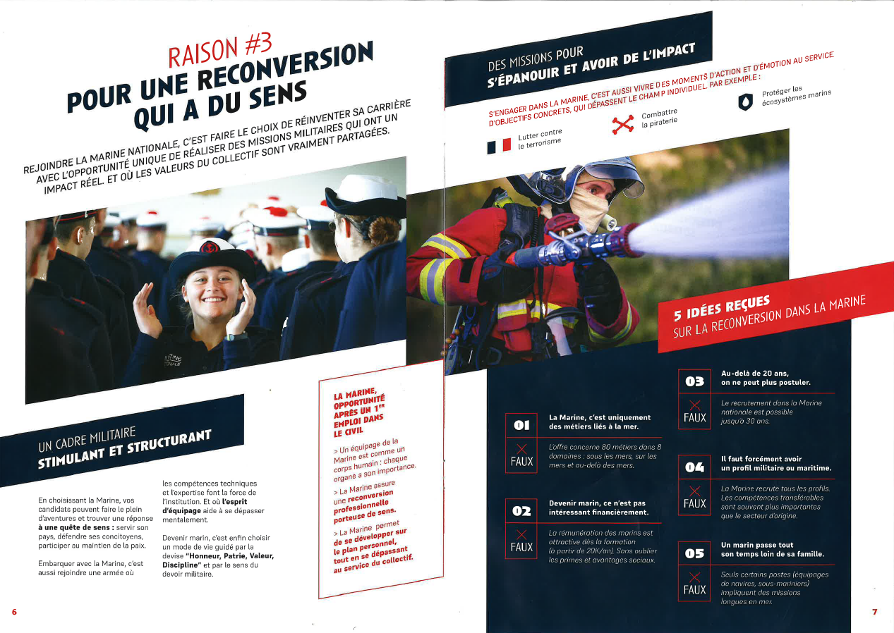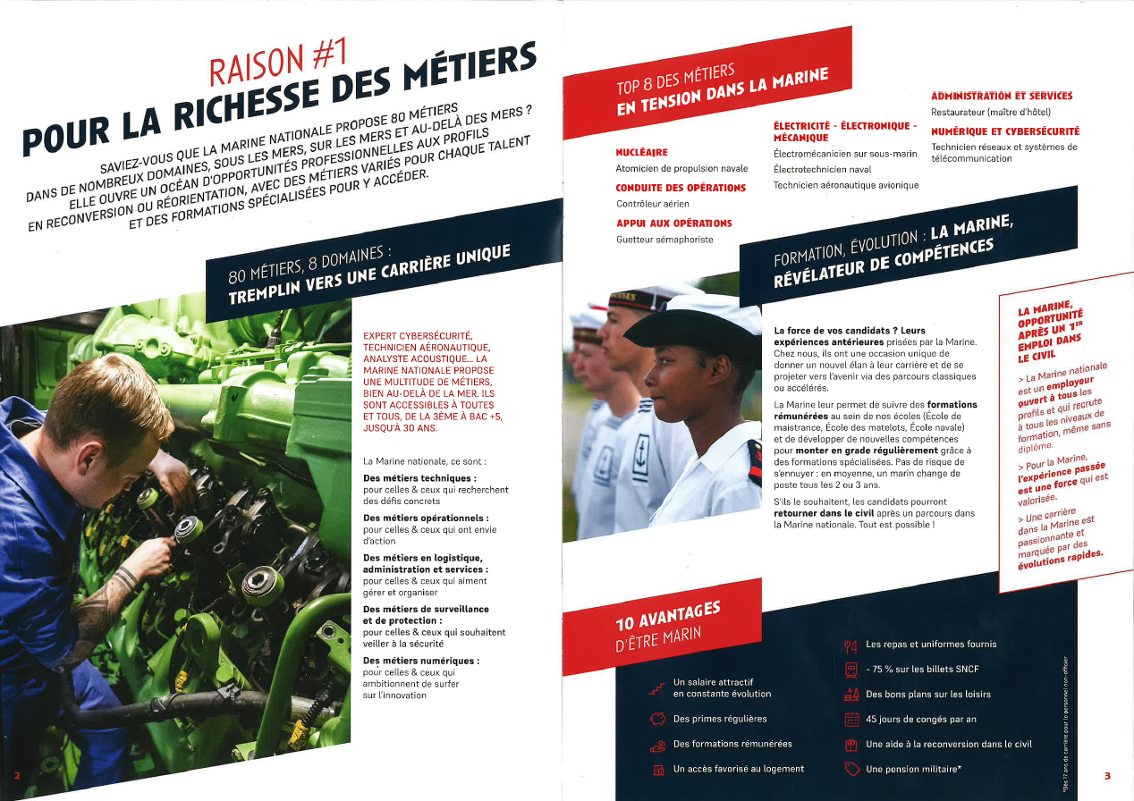 - Une découverte des métiers de la Marine nationale qui vous correspondent, avec 80 métiers dans 8 domaines : cyberdéfense, logistique, communication, mécanique, ingénierie, aéronautique...