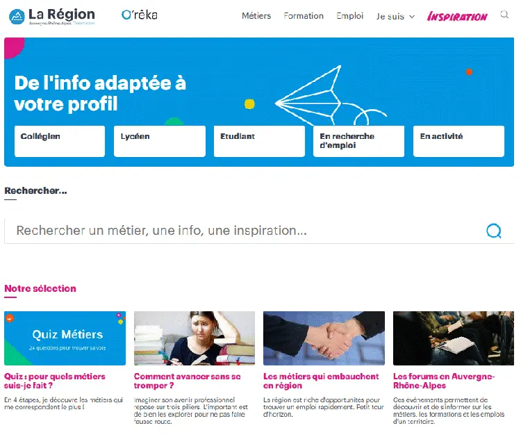Construit par l’association Auvergne-Rhône-Alpes Orientation et ses partenaires, O’rêka est un service d’information sur l’orientation qui mobilise des outils et ressources existants tels que des fiches métiers, l’offre de formation en région, l’annuaire de professionnels de l’orientation et bien d’autres… Un outil pour tous les publics